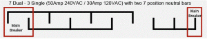 - A split 50/50 panel accepts — LEFT SIDE: dual 50 Amp main and up to 8 branch circuits — RIGHT SIDE: dual 50 Amp main and up to 4 branch circuits.